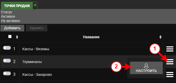 Перейдите в раздел «Настройки» → «Точки продаж»