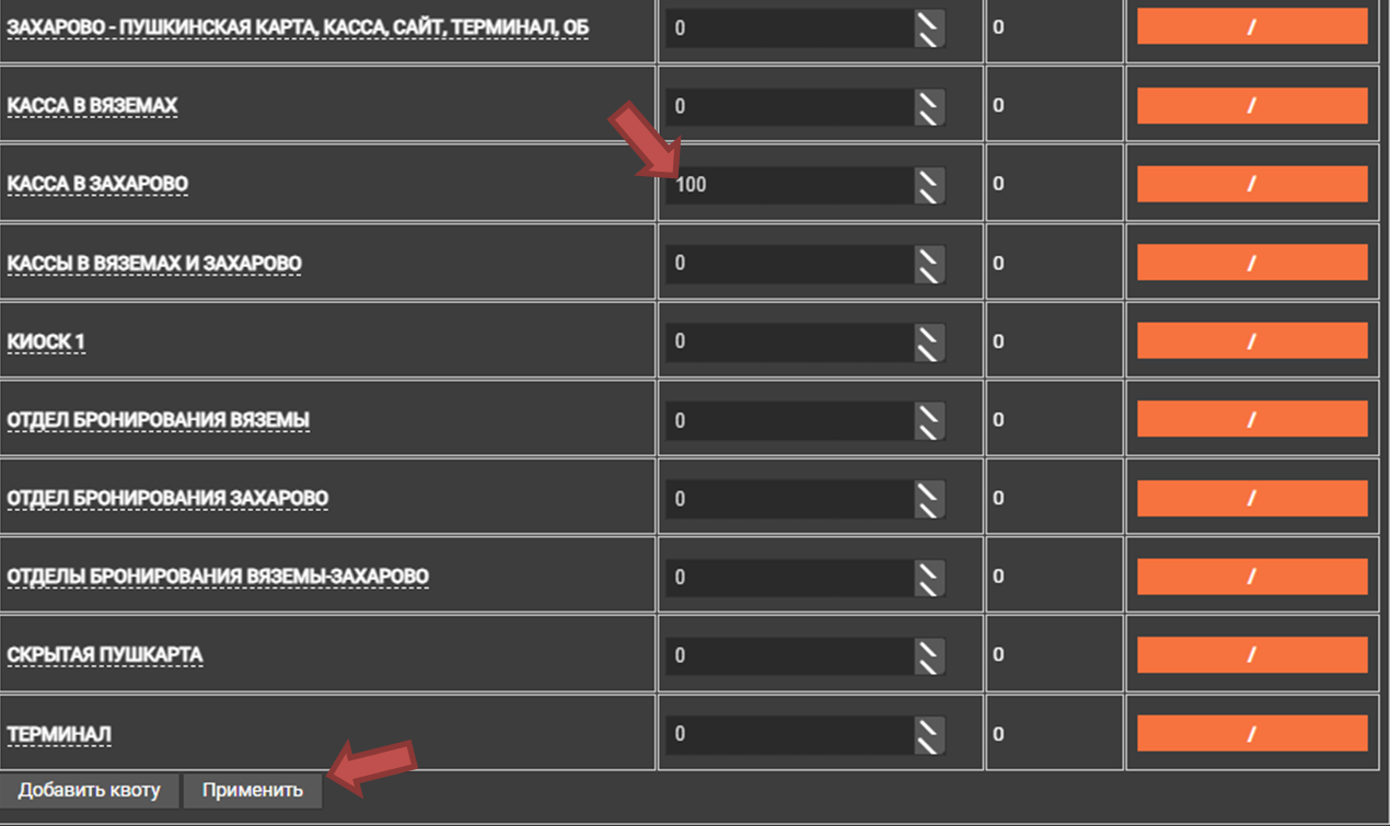 откроется информация по выделенным по данному месту квотам для продажи.