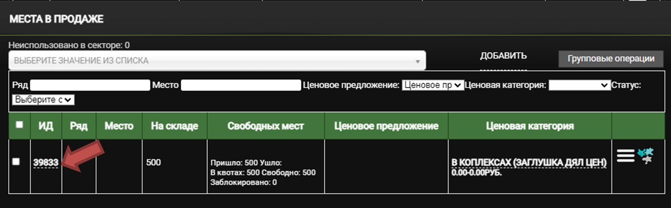 Откроются меню «места в продаже», нажмите на число в столбце «ИД»