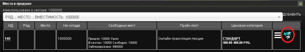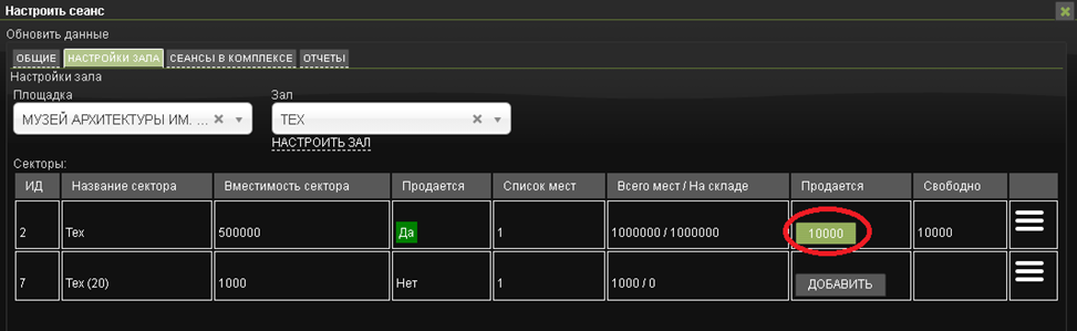 Двойной клику мышкой на цифре в колонке «Продается» откроется форма редактирования параметров места