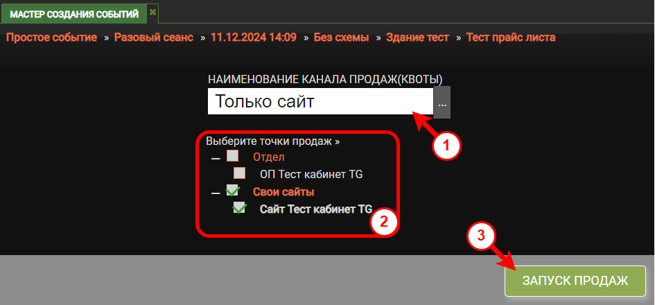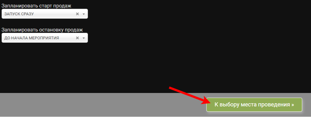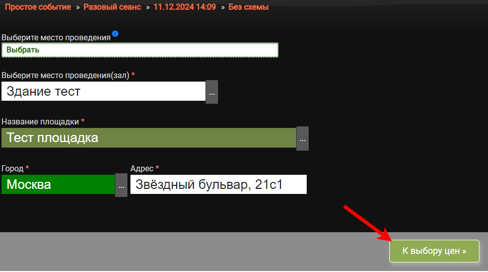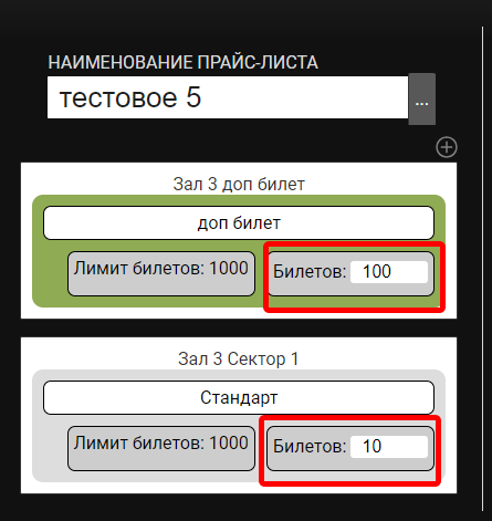 - Если вы указали существующий зал, то выберите количество билетов для соответсвующего комплекта мест