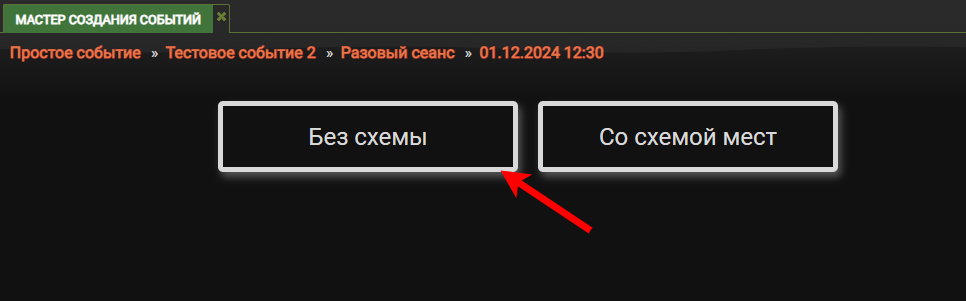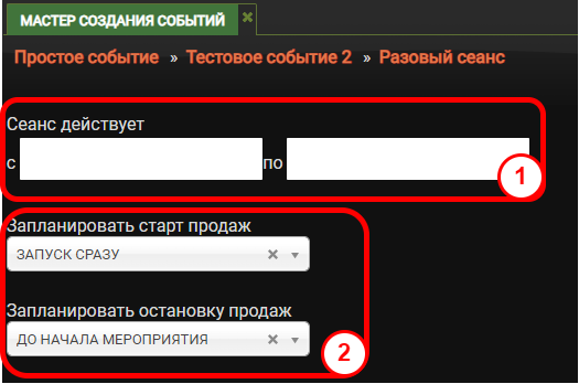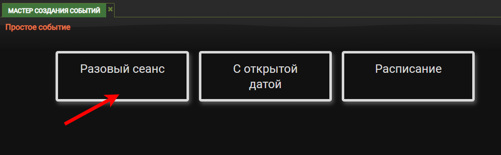 Выберите Разовый сеанс (С открытой датой, Расписание - функция в разработке)