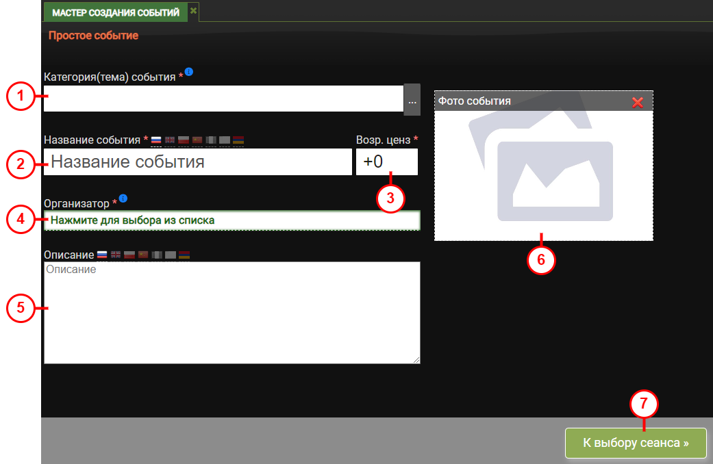 Возрастной ценз - Укажите возрастной ценз события в формате 7+