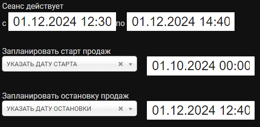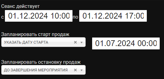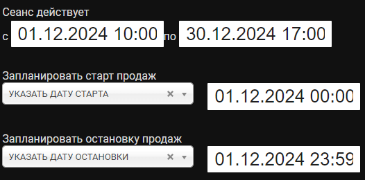 Старт продаж - заранее, окончание продаж, по завершению сеанса или немного раньше