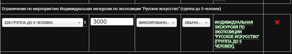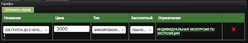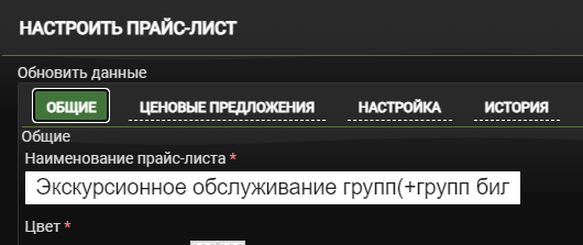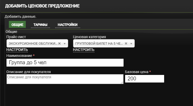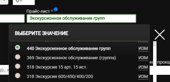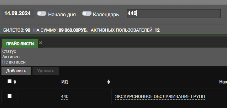 Настройка прайс-листа для группового билета