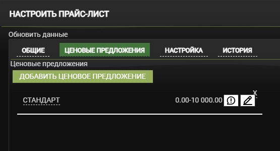 Нажмите Добавить ценовое предложение