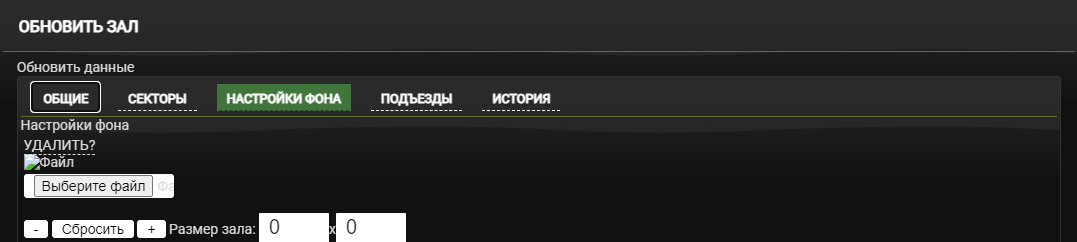 Откроется окно Обновить зал, перейдите во вкладку Секторы