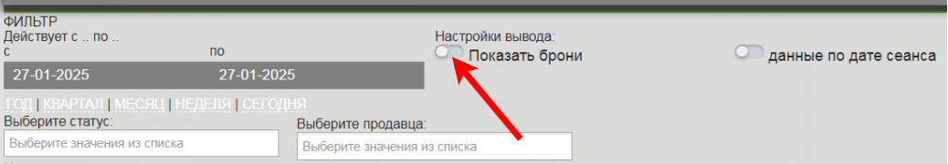 Нажмите кнопку Показать брони