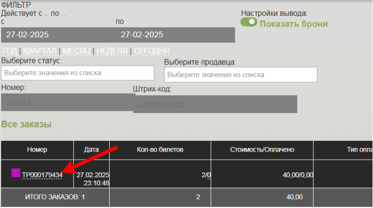 Выберите заказ и нажмите на его номер