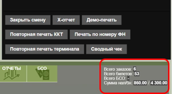 Откроются параметры смены. В верхней части указаны ключевые показатели смены по ККТ - приход и возврат.