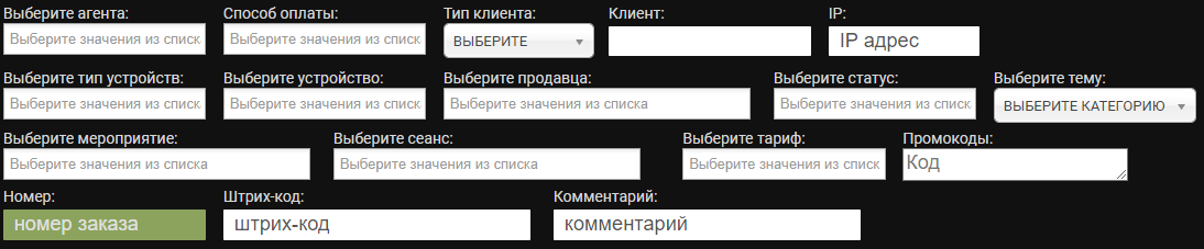 Поле Комментарий – фильтрация заказов по оставленным комментариям