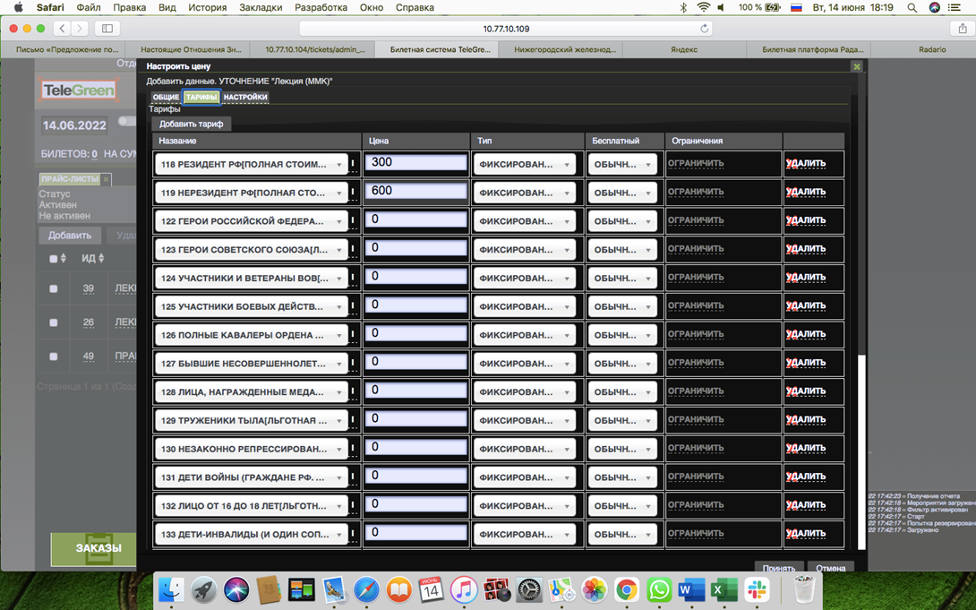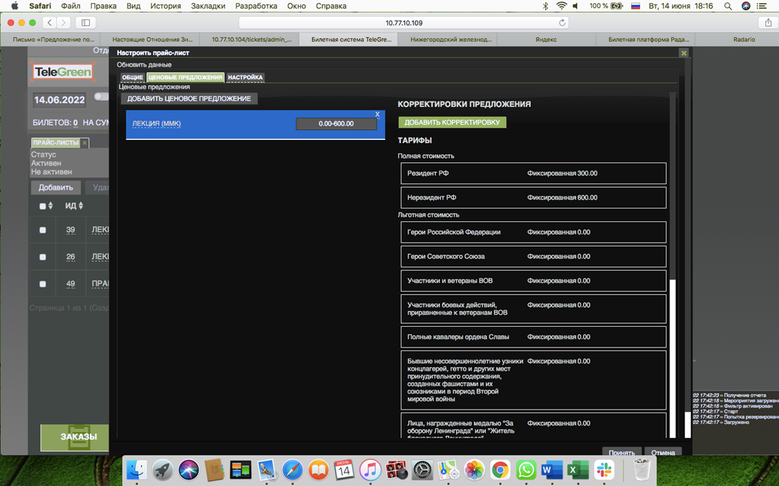 Переходим в Тарифы – меняем цены на те которые будут действовать в установленный период корректировки.