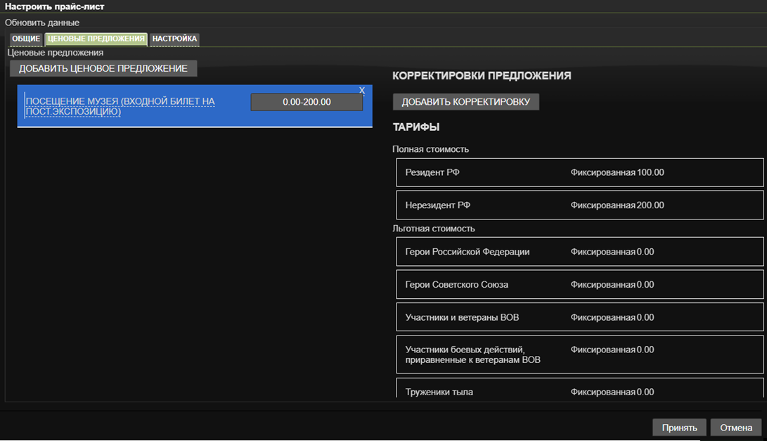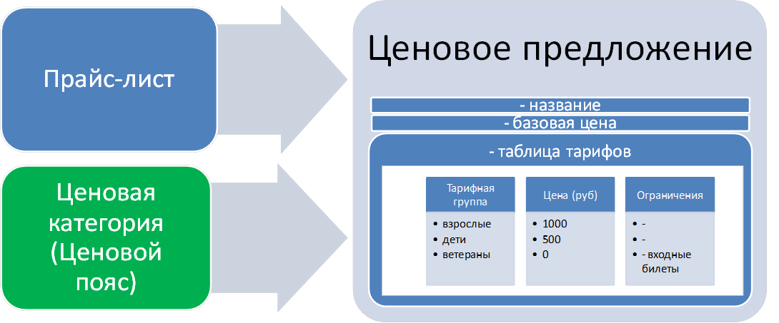 Цены задаются на пересечении прайс-листа и ценовой категории в разрезе тарифных групп.