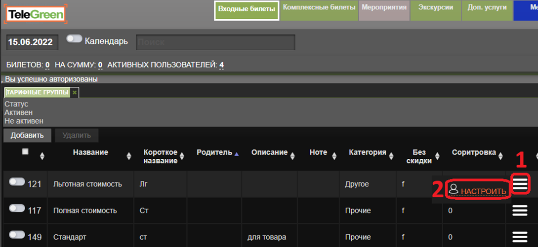 Сортировка – число задающее порядок в котором будет отображаться перечень тарифных групп для покупателей. Чем меньше число – тем выше будет тарифная группа в списке.