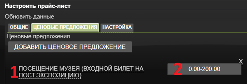 По клику на названии «Ценового предложения» (1- см. Рисунок 7) открывается форма его редактирования.