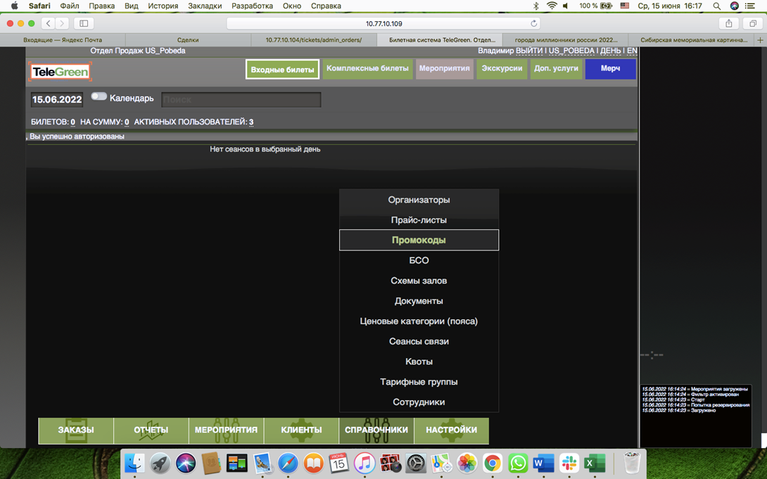 Вкладка Мероприятия