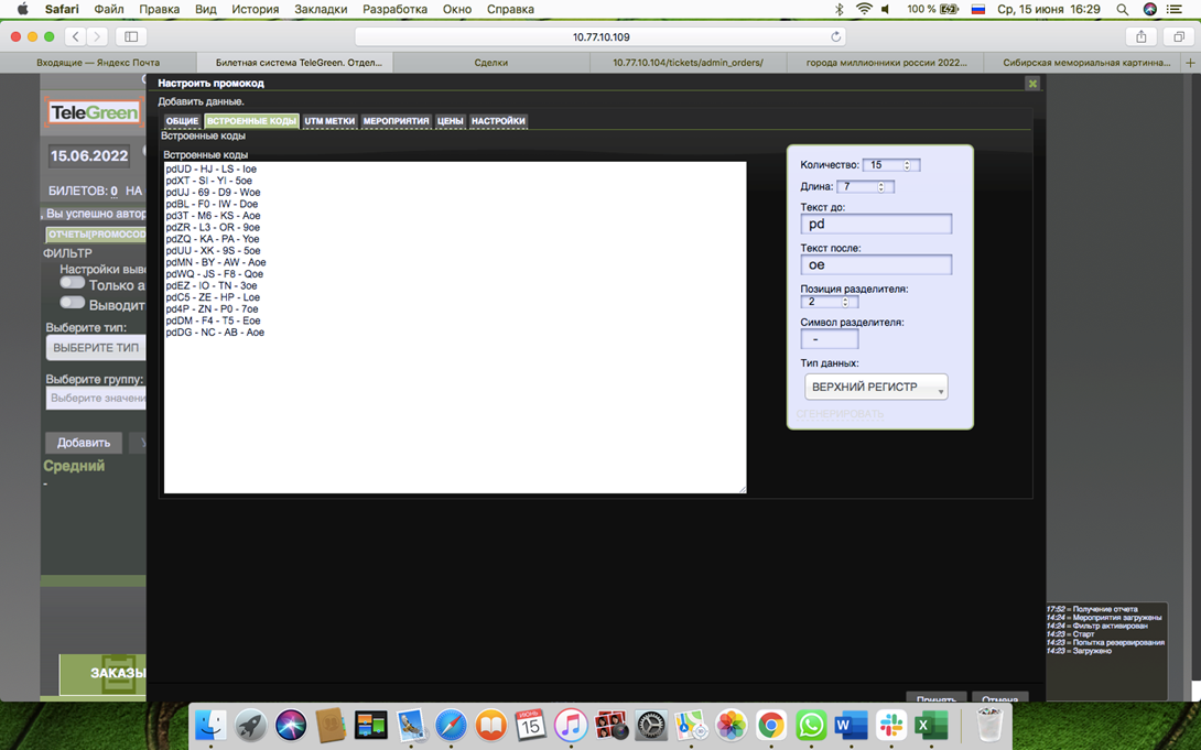 Поля Кол-во, Длина – количество создаваемых промокодов и их длинна в символах.