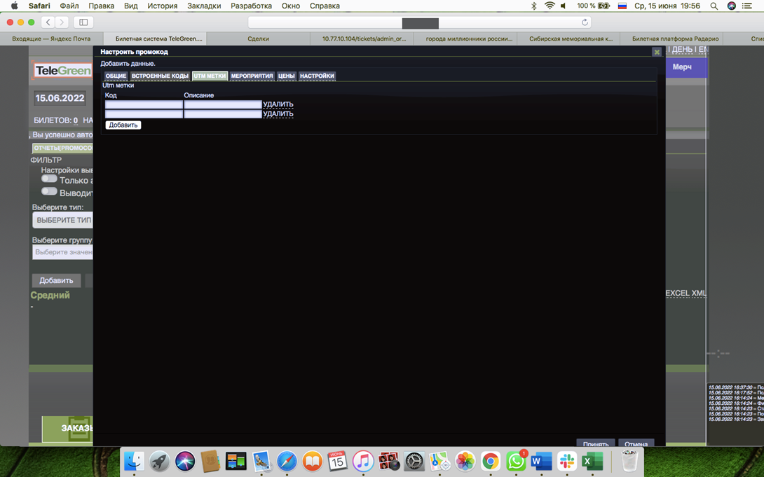 Поле Код – Указывается код UTM-метки