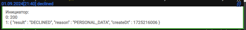 200 - проверка пройдена, результат проверки указан после слов result. Варианты результатов проверки: