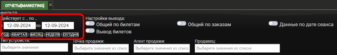 Установите дату с которой необходимо отобразить заказы (для отображения всех заказов рекомендуем выбирать дату как можно раньше)
