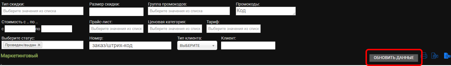 Перейдите в раздел «Отчеты» - «Маркетинговый»