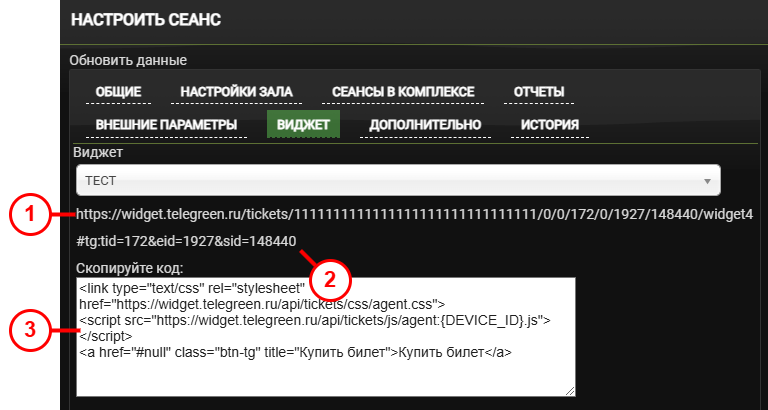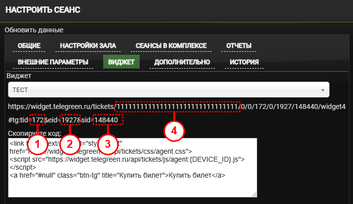 ИД сеанса (можно посмотреть в Мероприятия - Сеансы)