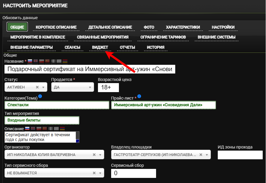Для отображения конкретных мероприятий мы в ссылке виджета передаем параметры этого мероприятия.